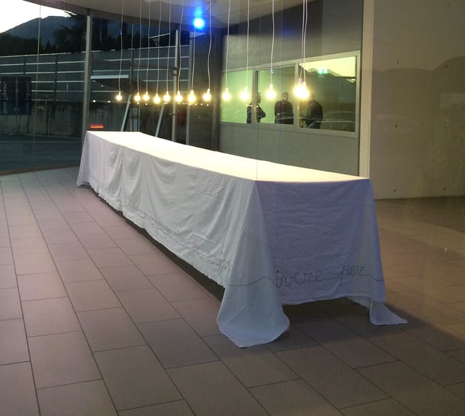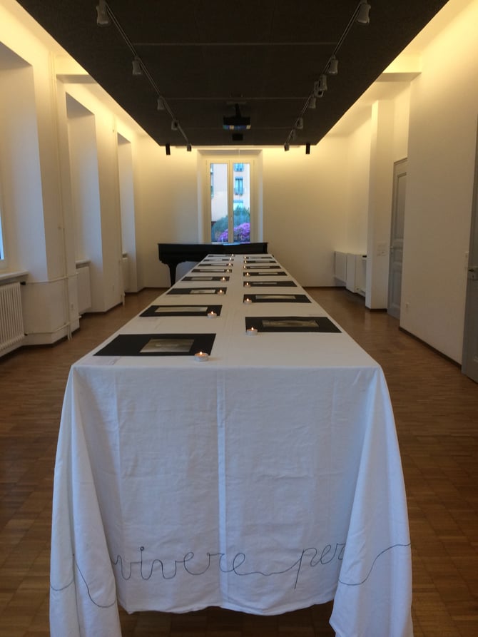 installazione e foto ricamate presso Domus Poetica Bellinzona